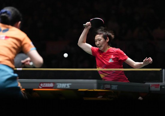 12月7日,王曼昱在女单比赛中回球。新华社记者 王英 供图